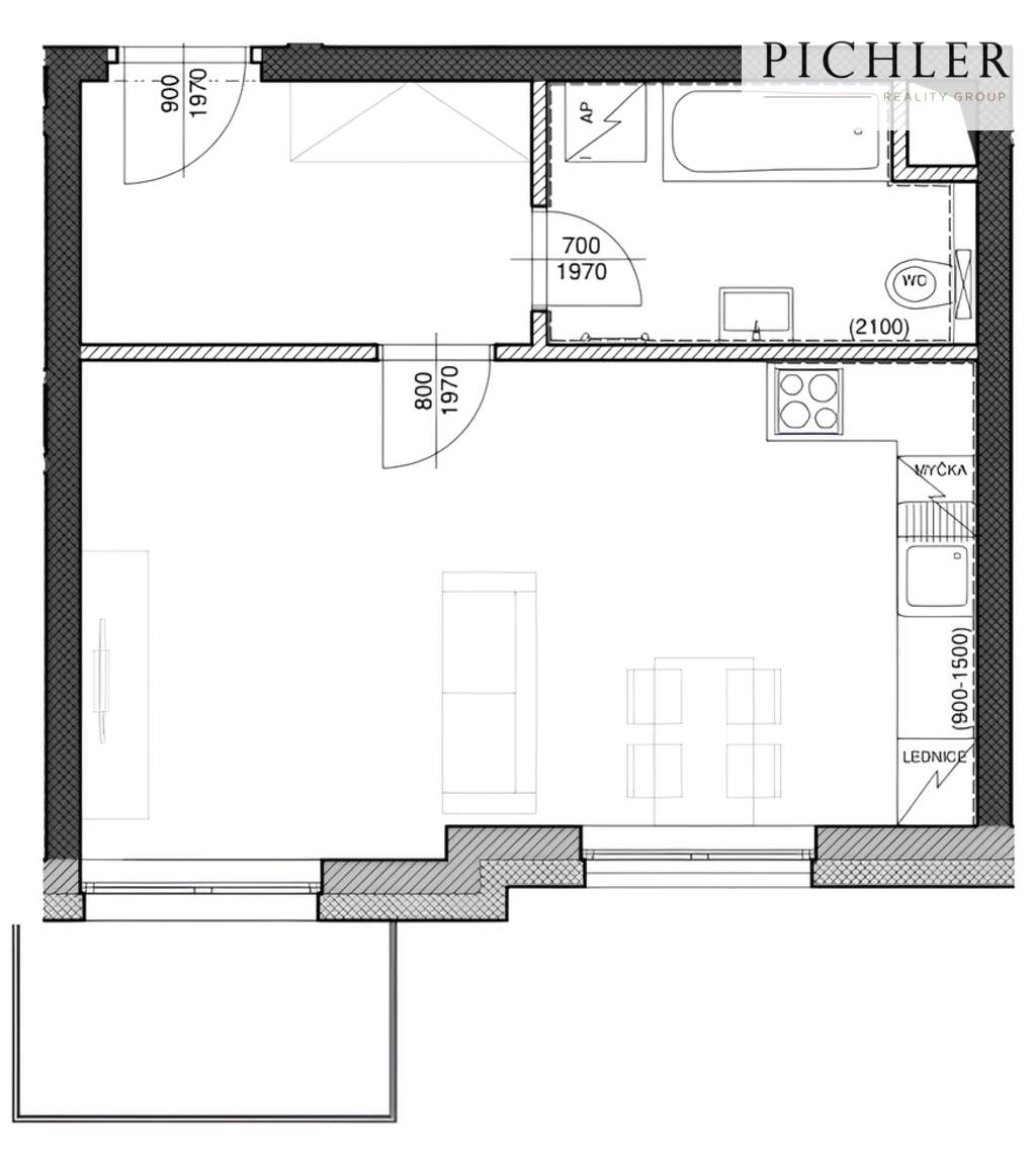 Fotografie 3/25 Dispoziční plán 1+kk - A1
